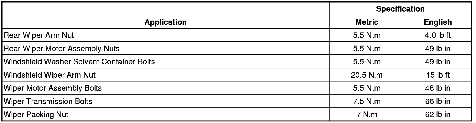 Wiper and Washer Systems: Specifications