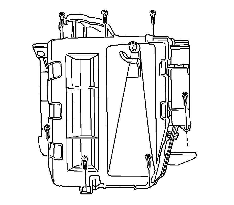 3. Remove the heater/air distribution case assembly. Refer to HVAC Module Assembly Replacement (Service and Repair).
