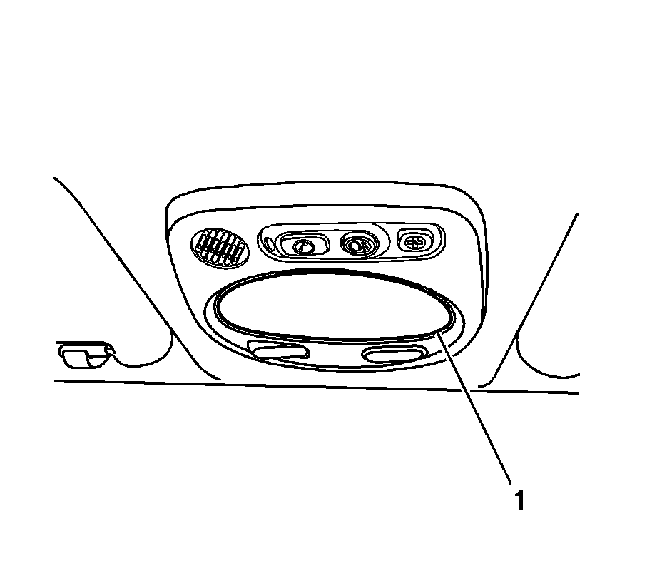 3. Install the interior courtesy lamp (1). Refer to Interior Courtesy Lamp Replacement (Interior Courtesy Lamp Replacement).