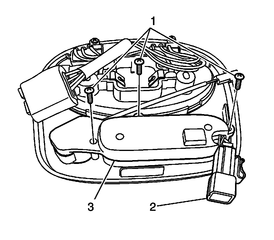 3. Remove the screws (1) and the Onstar button cover (3) from the interior courtesy lamp.