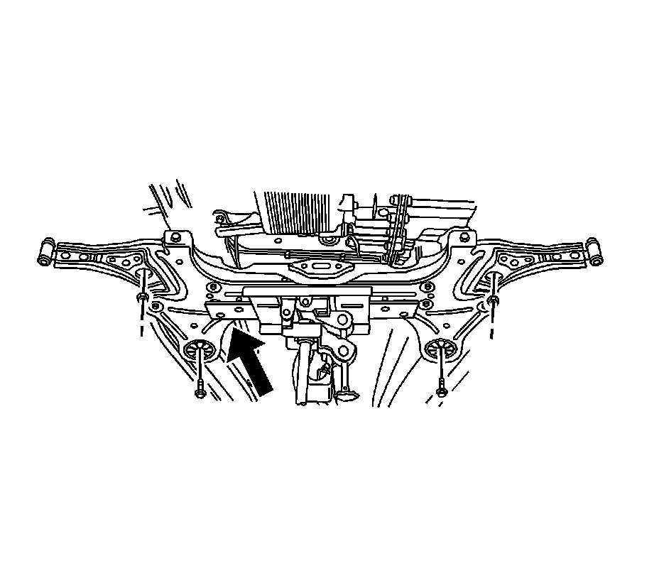 2. Install the crossmember assembly front to body nut and the crossmember assembly rear to body bolt and tighten to 150 Nm (111 lb ft).