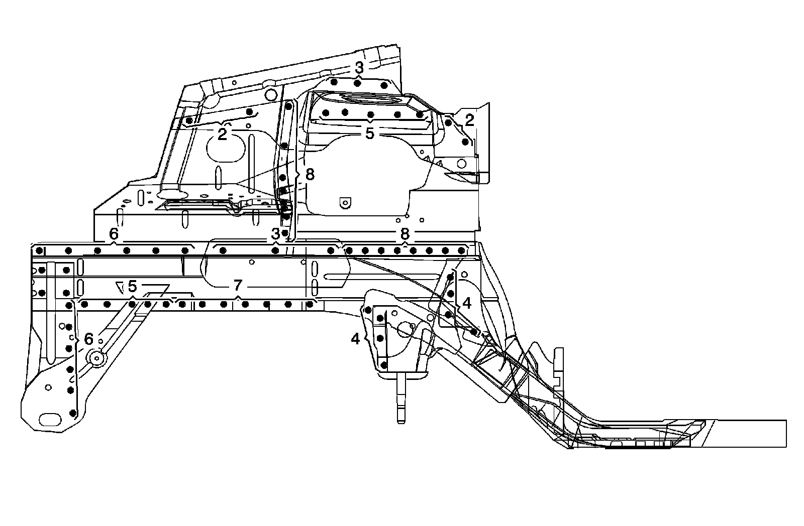 Important: The number of spot welds needed in each location is shown in illustration.