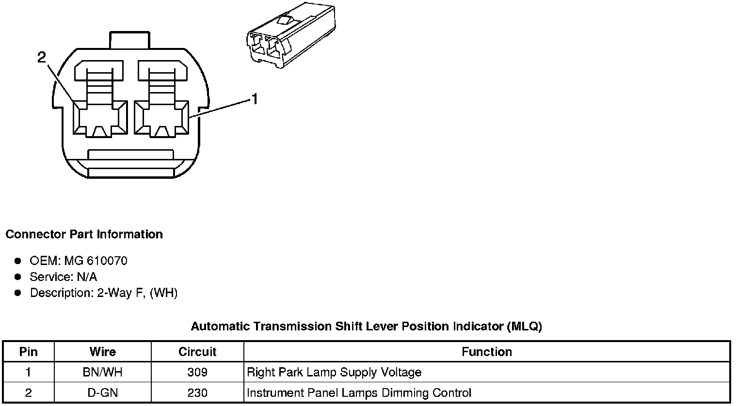 Automatic Transmission Shift Lever Position Indicator (MLQ)