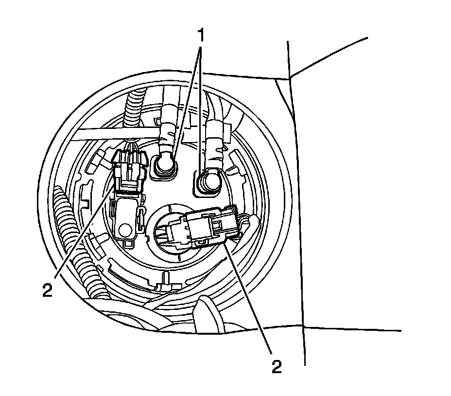 5. Disconnect the electrical connectors (2) at the fuel pump assembly.