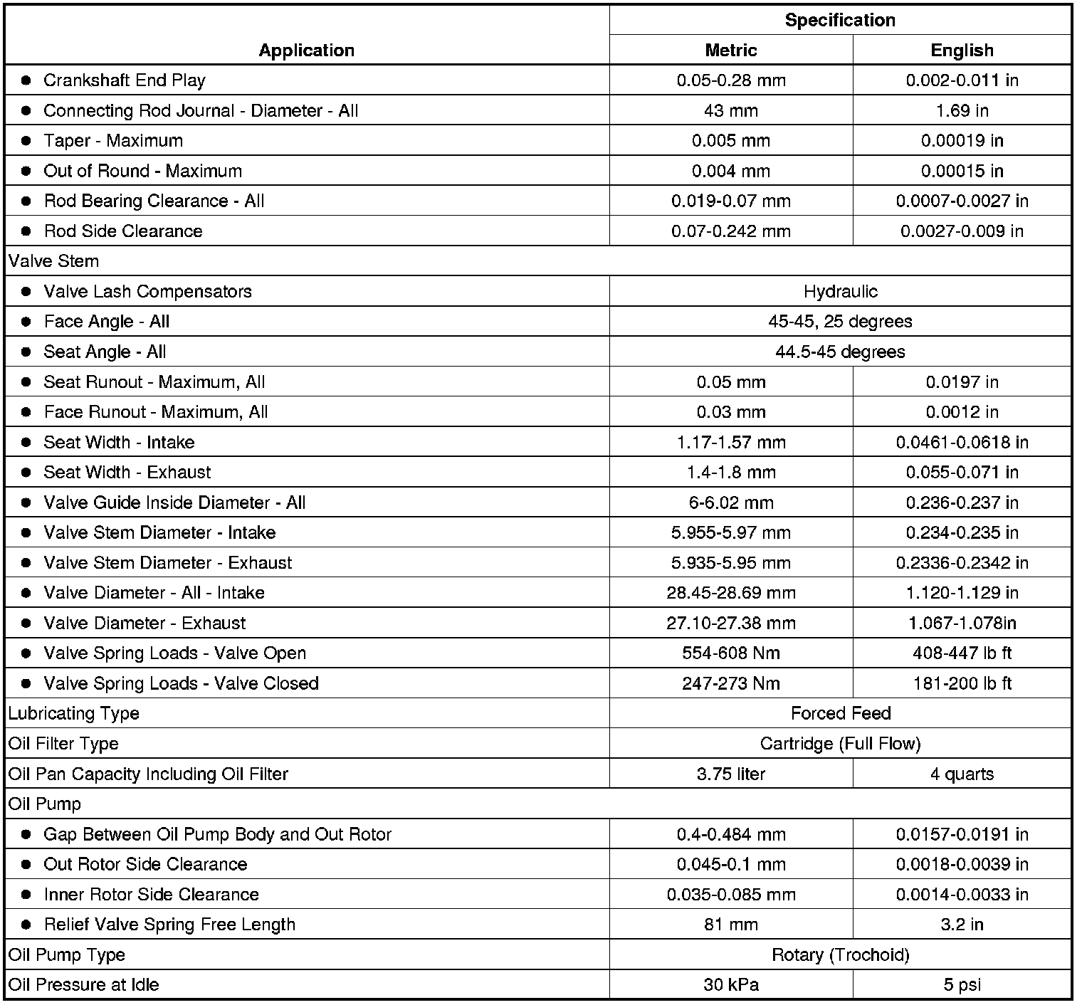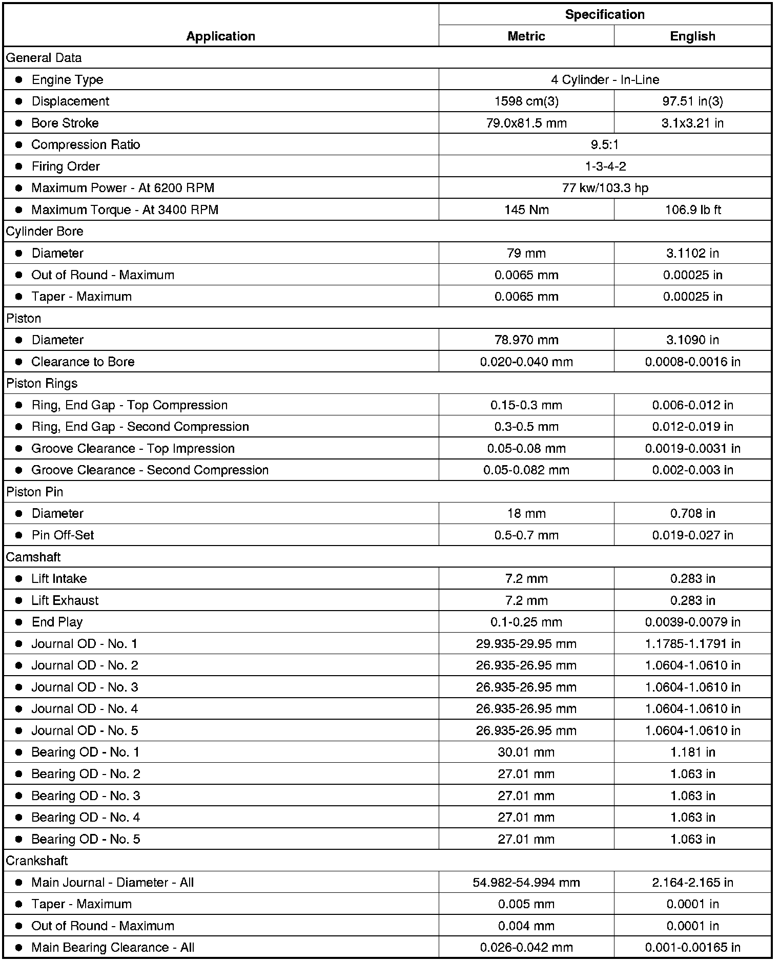 Engine Mechanical Specifications
