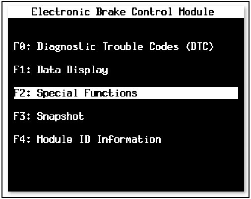 7. Select "F2.Special Functions" and then Select "F2.Brake Valve Cycling".