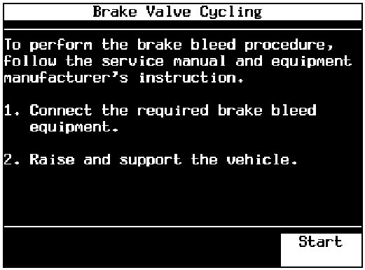 11. The "Apply and Hold Brake Pedal" message will appear from the Brake Valve Cycling screen.