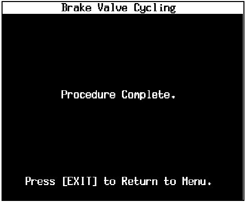 14. The "Procedure Complete" message will appear on the Brake Valve Cycling screen.