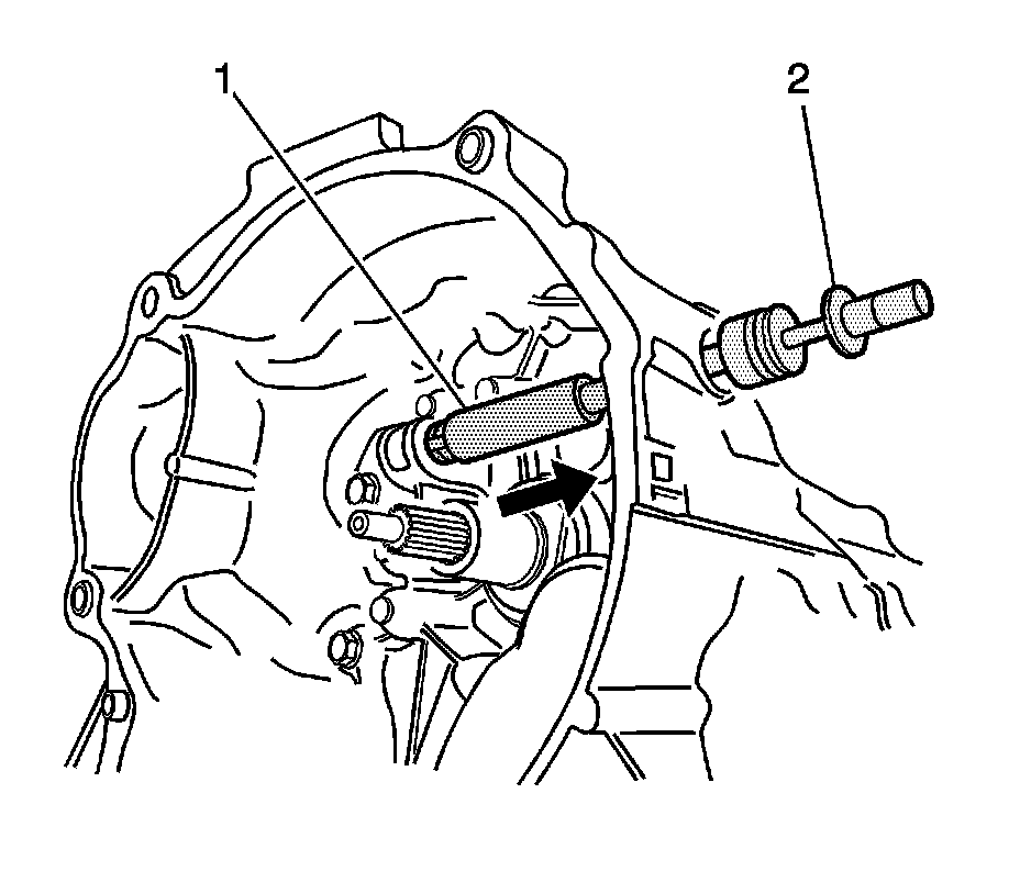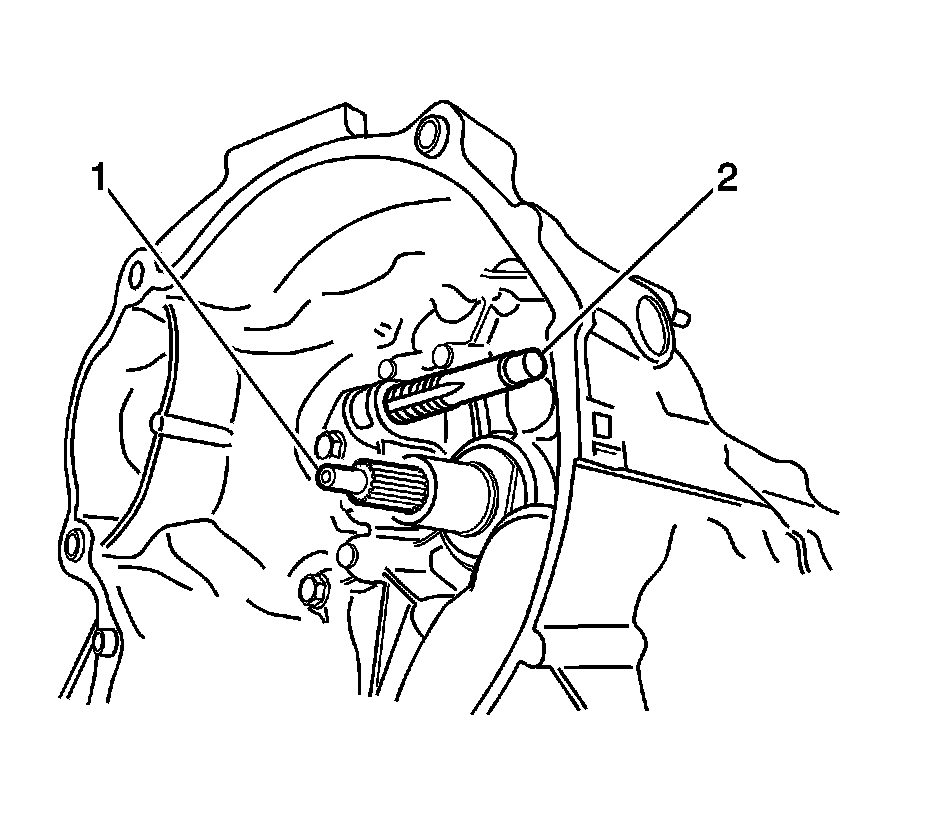 2. Remove the release arm (2). Refer to Clutch Pedal Arm Replacement (Clutch Pedal Arm Replacement).
