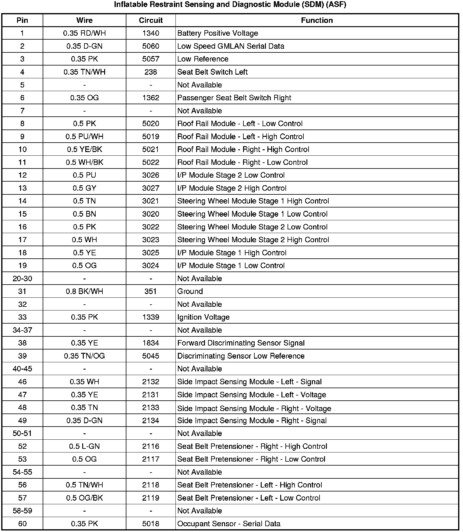 Inflatable Restraint Sensing and Diagnostic Module (SDM) (without ASF)