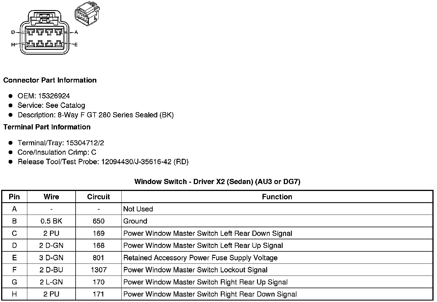 Window Switch - Driver X2 (Sedan) (AU3 or DG7)