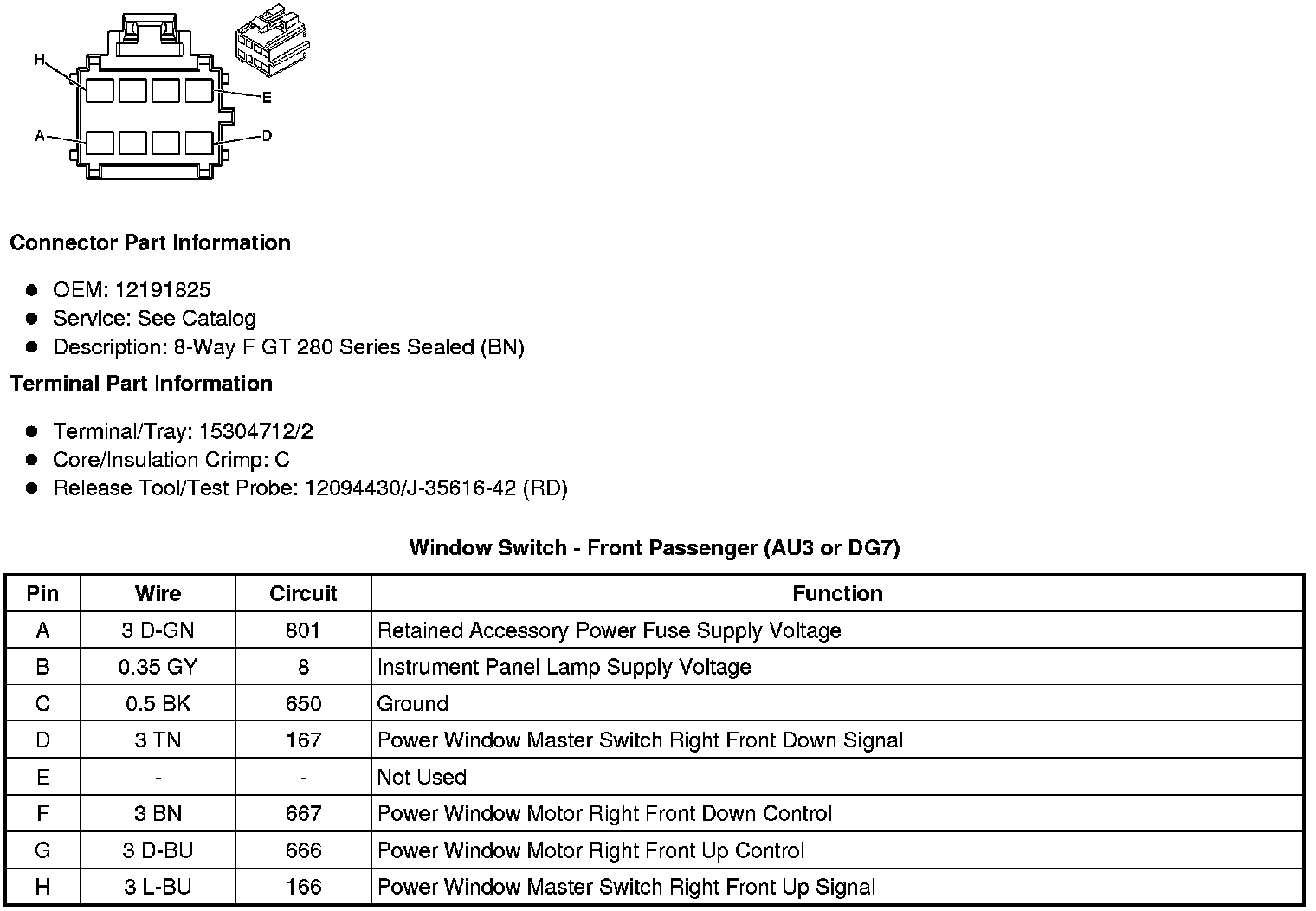 Window Switch - Front Passenger (AU3 or DG7)