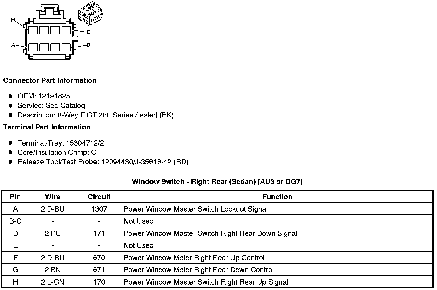 Window Switch - Right Rear (Sedan) (AU3 or DG7)