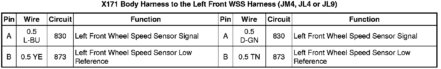 X171 Body Harness to the Left Front WSS Harness (JM4, JL4 or JL9)