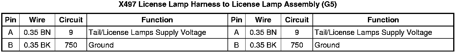 X497 License Lamp Harness to License Lamp Assembly (G5)