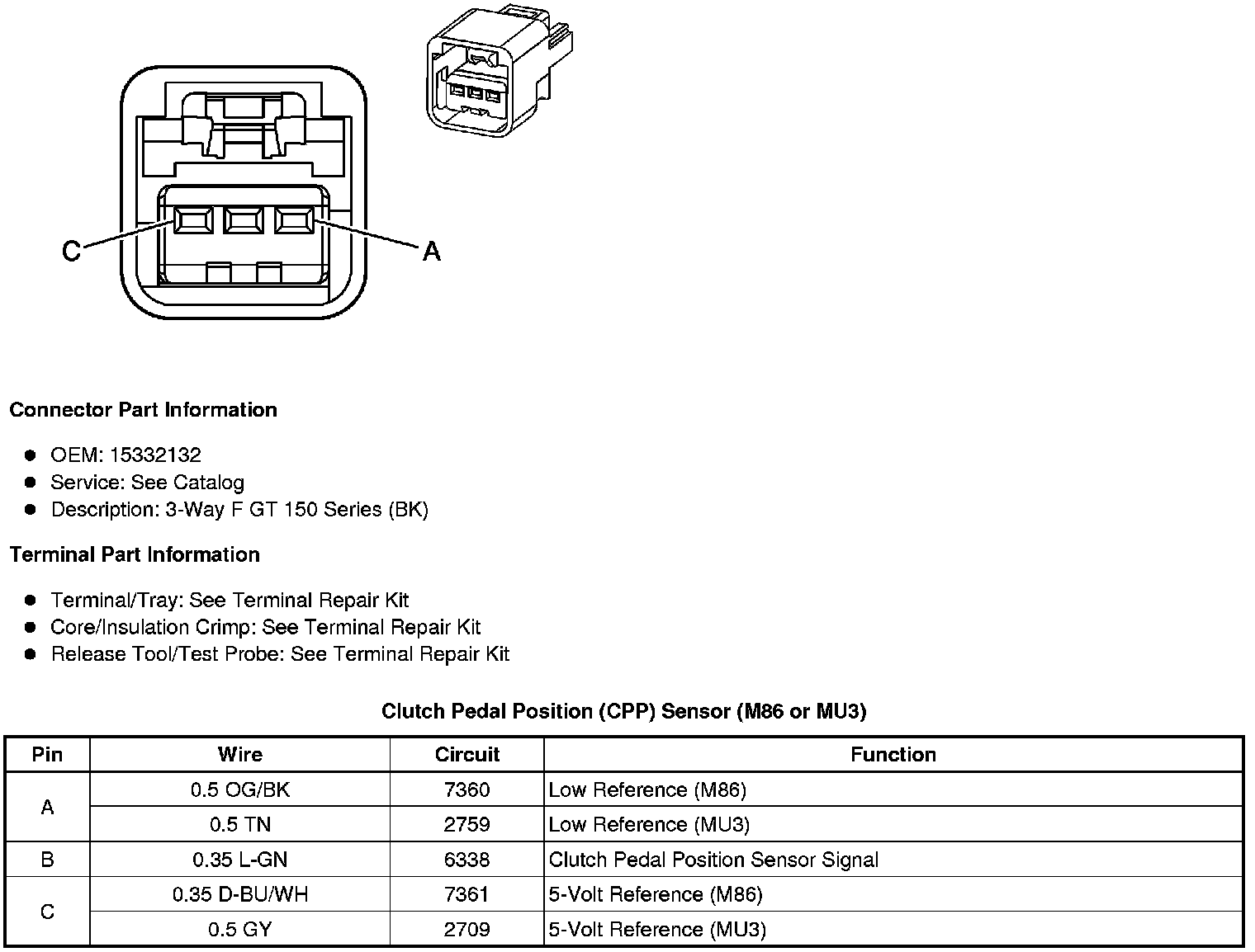 Clutch Pedal Position (CPP) Sensor (M86 or MU3)