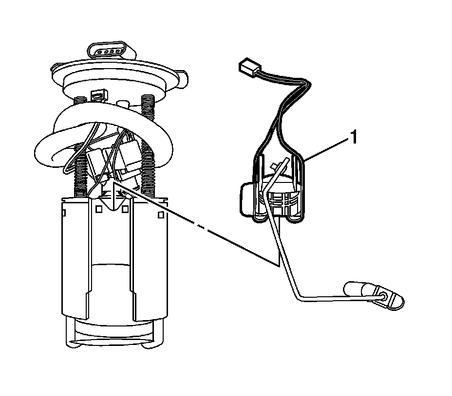 7. Slide the fuel level sensor (1) up and out from the module bucket.