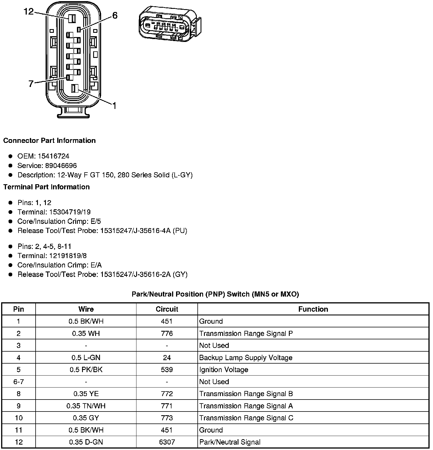 Transmission Position Sensor/Switch: Diagrams