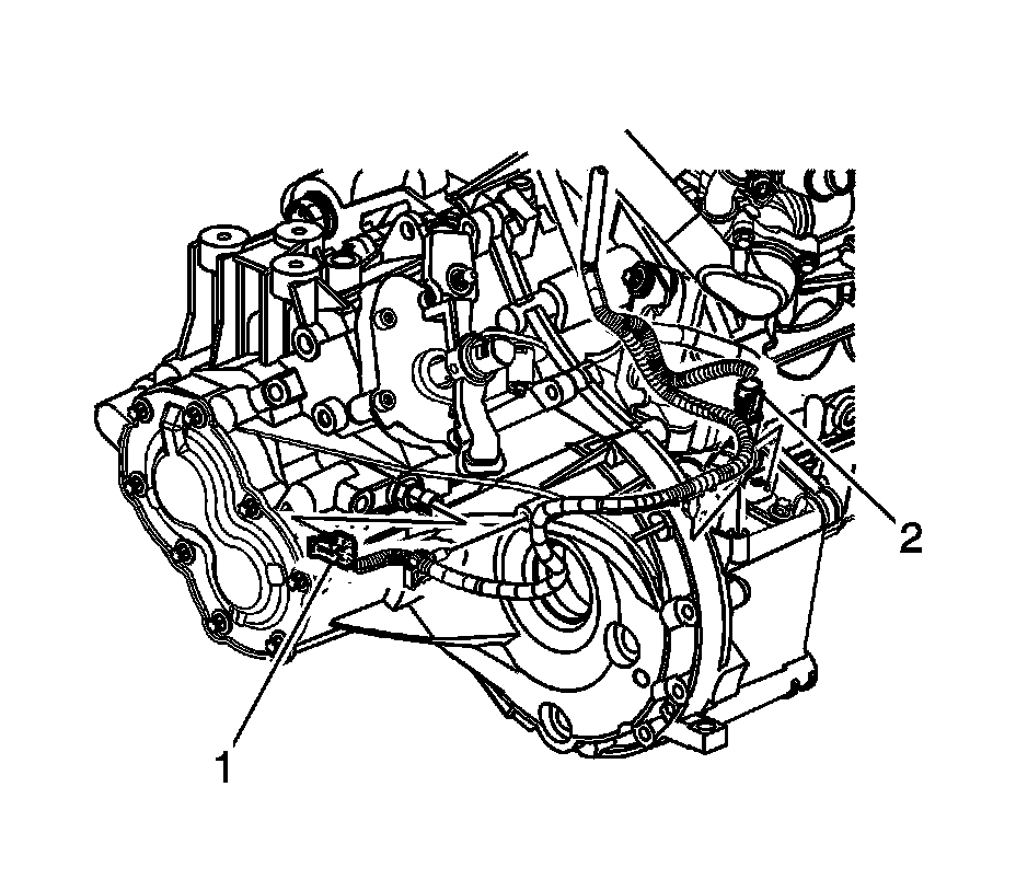 2. Disconnect the vehicle speed sensor (VSS) electrical connector (2).