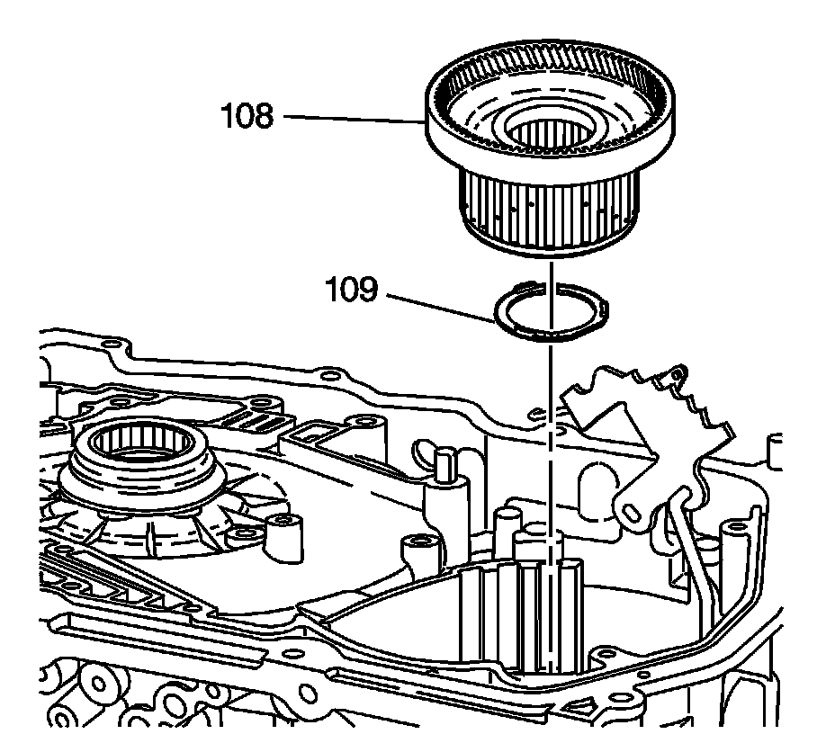 Note: Install the forward clutch hub and input internal gear assembly into the transmission case. Rotate the assembly while installing in order to spline the forward clutch hub (108) to the forward clutch plates (602).