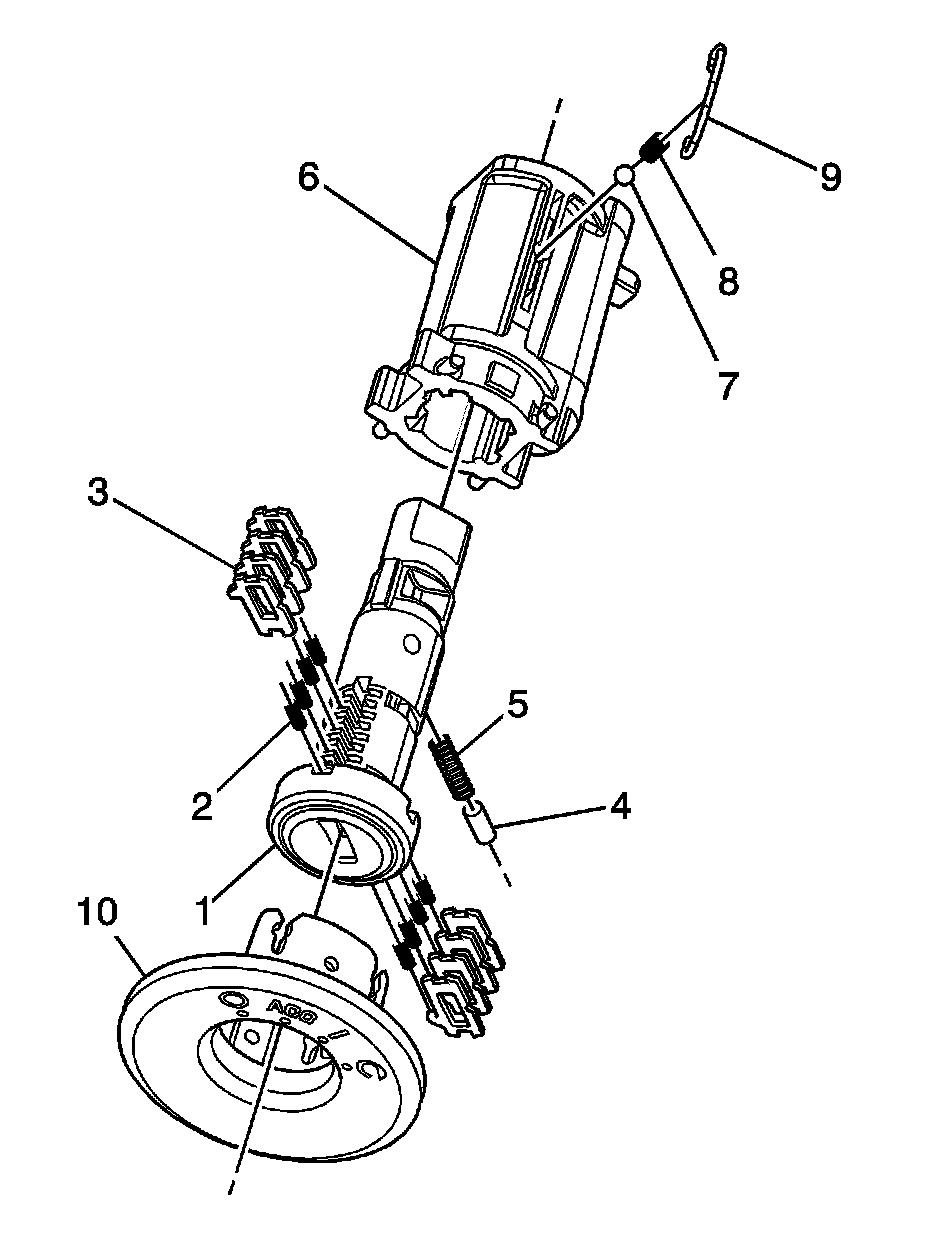Note: The ignition lock cylinder tumblers (3) are not self-retaining and must be held in place if the key is not fully inserted into the lock cylinder or until the cylinder (1) is assembled into the case assembly (6).