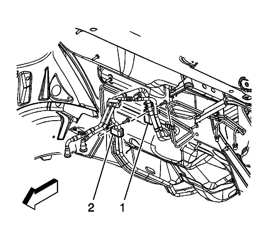 16. Connect the EVAP line quick connect fitting (2) to the EVAP purge solenoid. Refer to Plastic Collar Quick Connect Fitting Service (Plastic Collar Quick Connect Fitting Service).