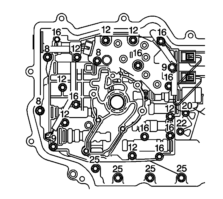 6. Install the 18 control valve body assembly bolts.
