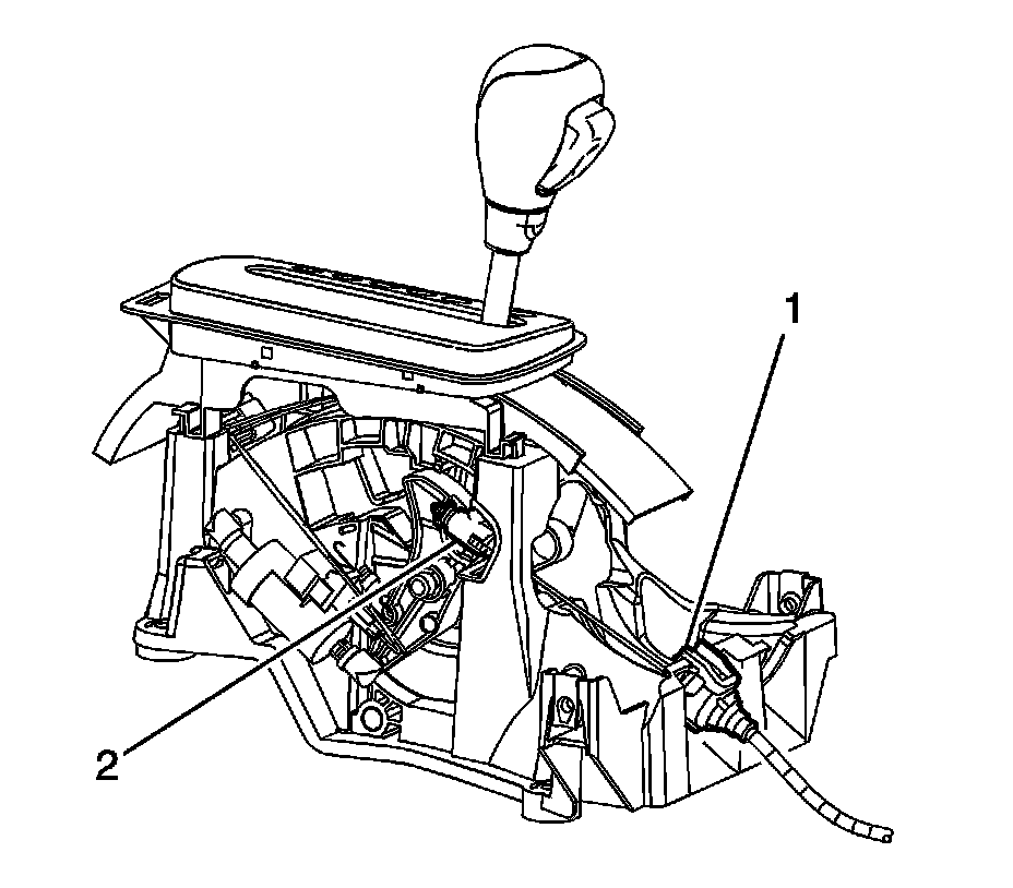 5. Disconnect the park lock cable assembly (2) from the pin on the control assembly.