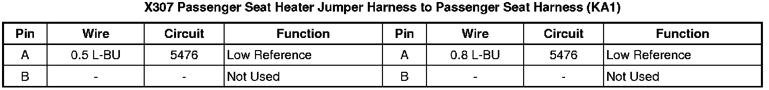 X307 Passenger Seat Heater Jumper Harness to Passenger Seat Harness (KA1)