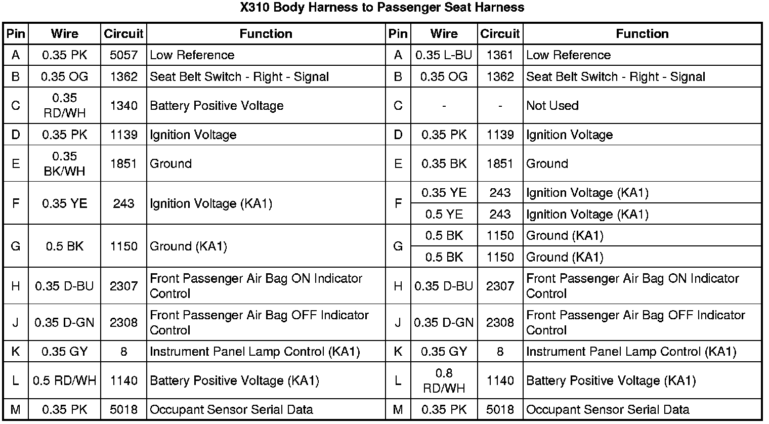 X310 Body Harness to Passenger Seat Harness