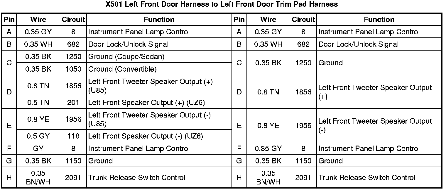 X501 Left Front Door Harness to Left Front Door Trim Pad Harness