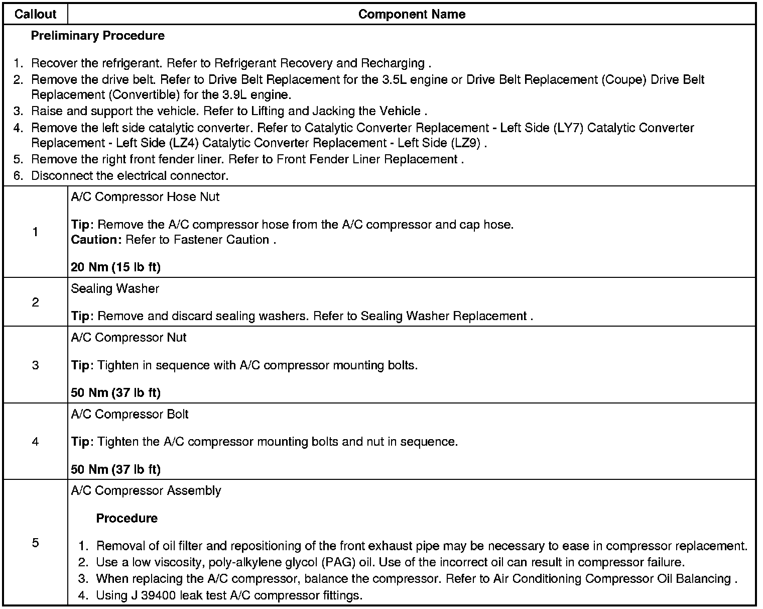 Air Conditioning Compressor Replacement (LZE, LZ4, LZ9) (3.5L, 3.9L)