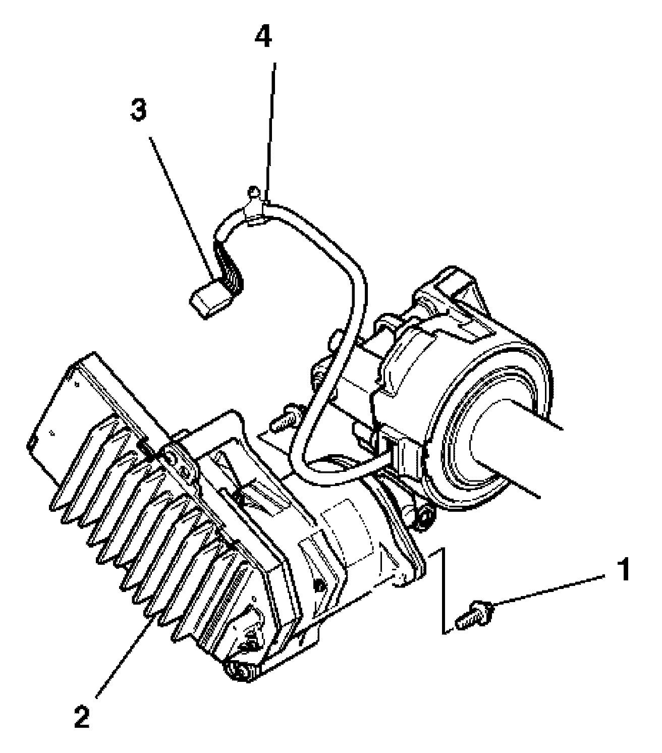 5. Install the power steering assist motor sensor wire harness strap clip (4) to the power steering assist motor.