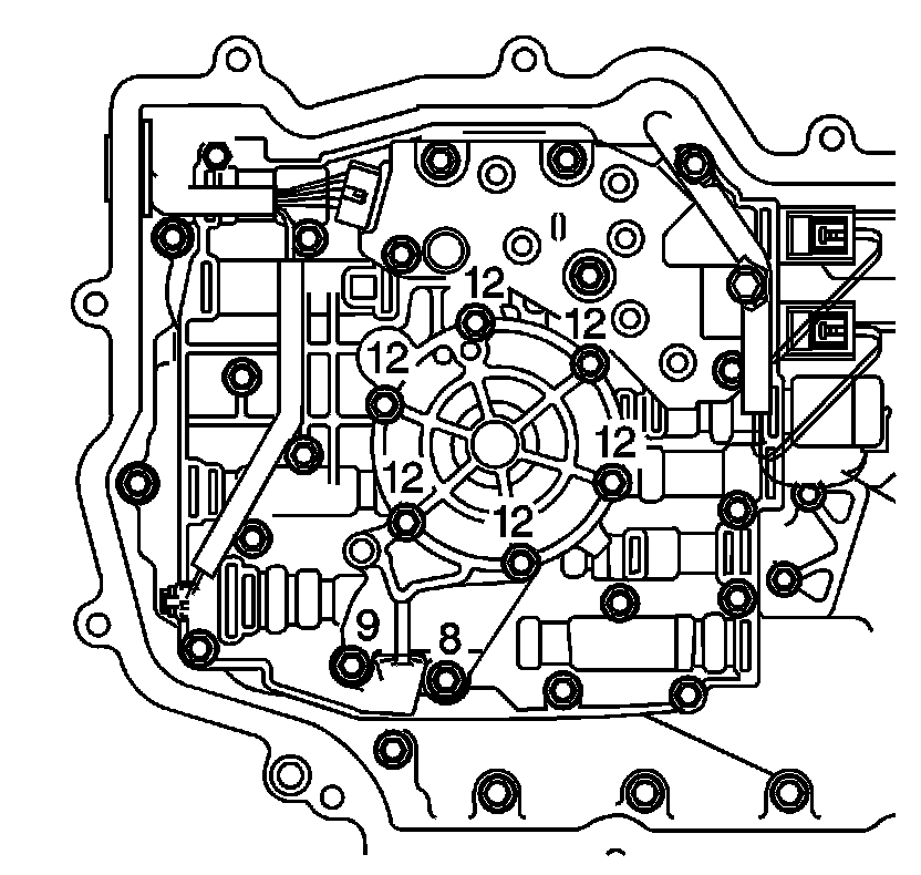 3. Install the eight oil pump bolts (8, 9, 12). Hand start the bolts. Tighten the bolts to 12 Nm (9 lb ft).