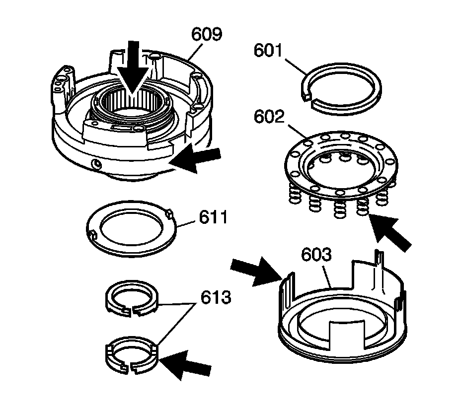 4. Inspect the fourth clutch spring assembly (602) for distorted or missing springs.