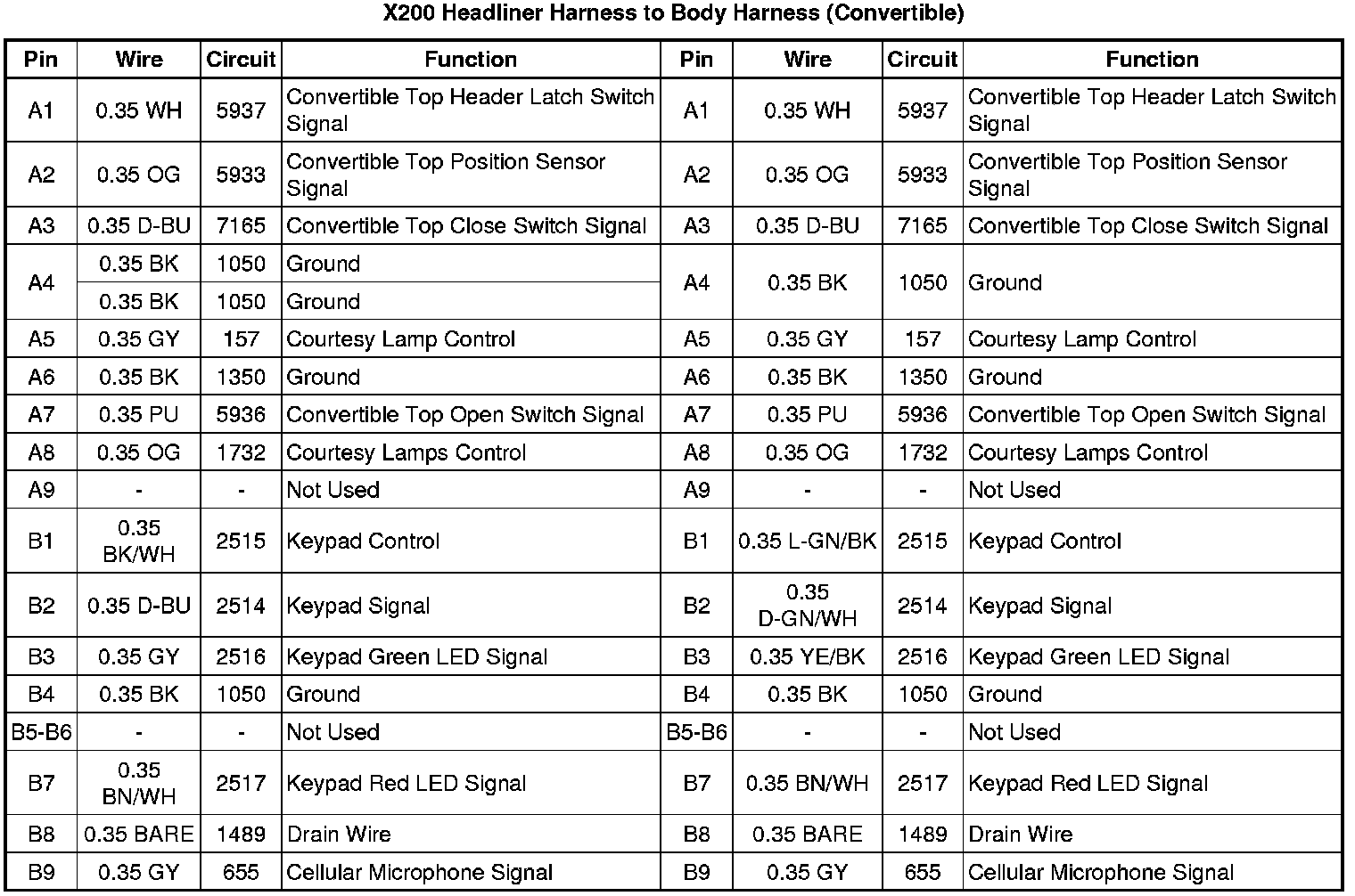 X200 Headliner Harness to Body Harness (Convertible)