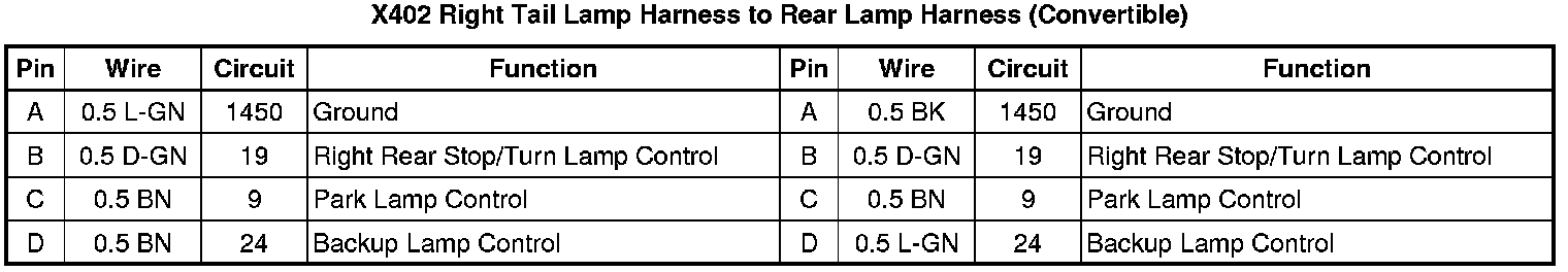 X402 Right Tail Lamp Harness to Rear Lamp Harness (Convertible)