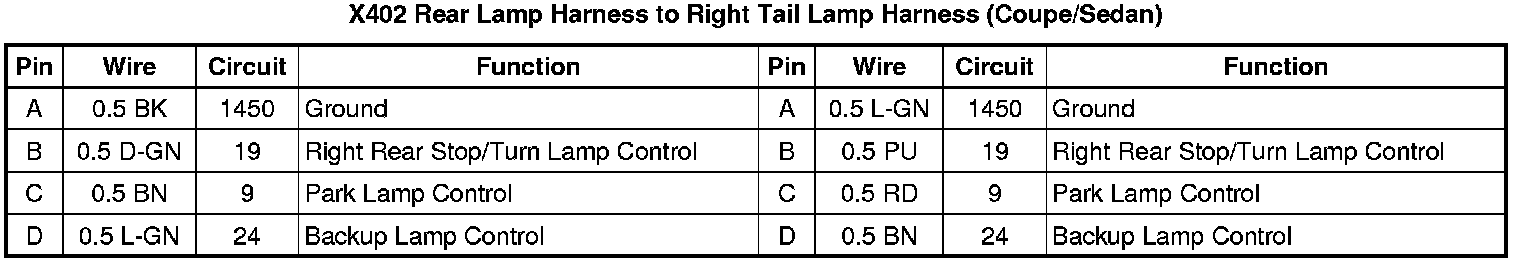 X402 Rear Lamp Harness to Right Tail Lamp Harness (Coupe/Sedan)
