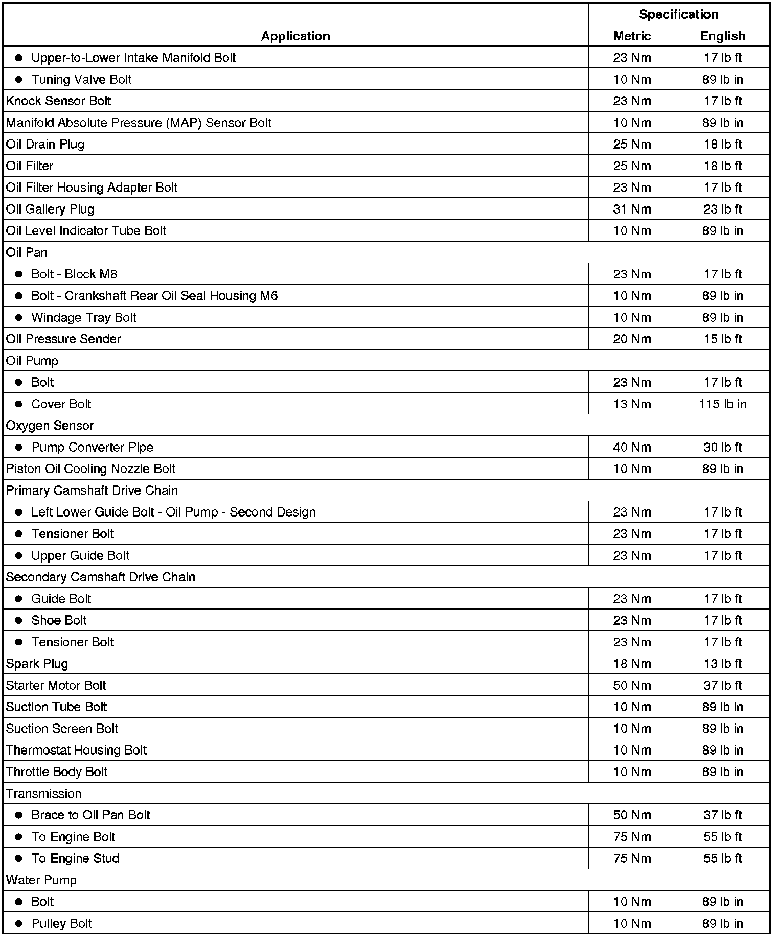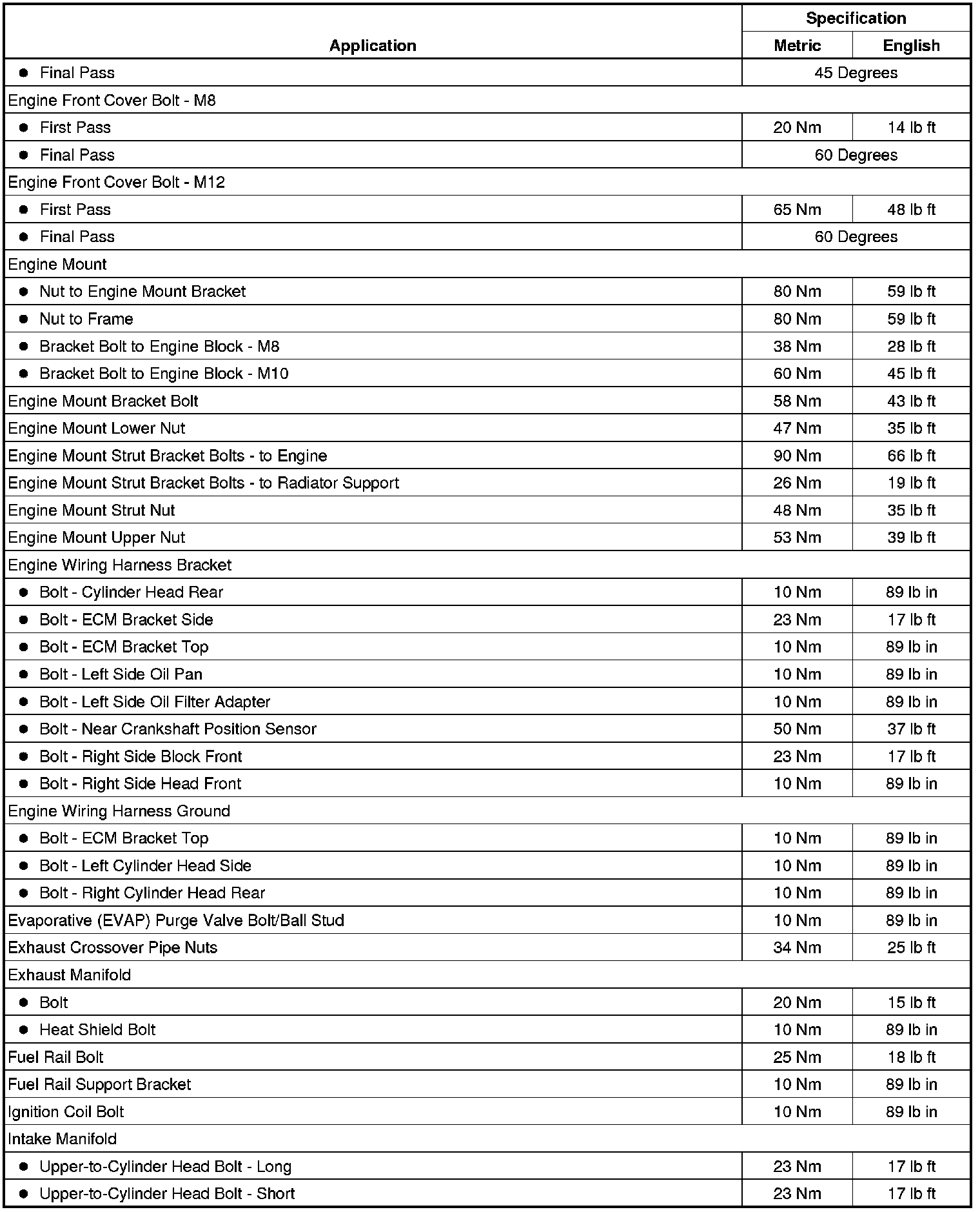 Fastener Tightening Specifications