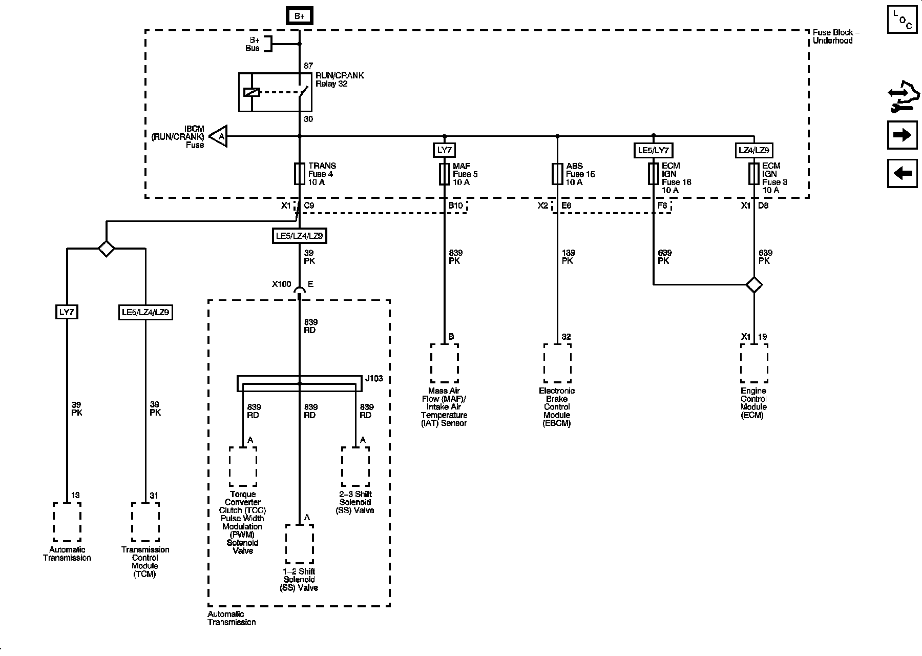 Underhood Fuse Block RUN/CRANK Relay, ABS, IGN 1, INJ, PCM IGN 1 and TRANS Fuses