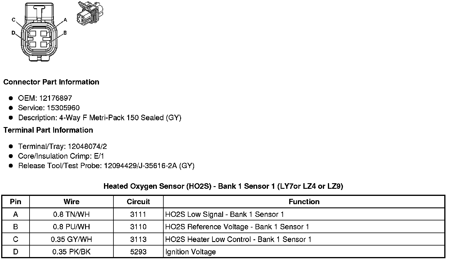 Heated Oxygen Sensor (HO2S) - Bank 1 Sensor 1 (LY7or LZ4 or LZ9)