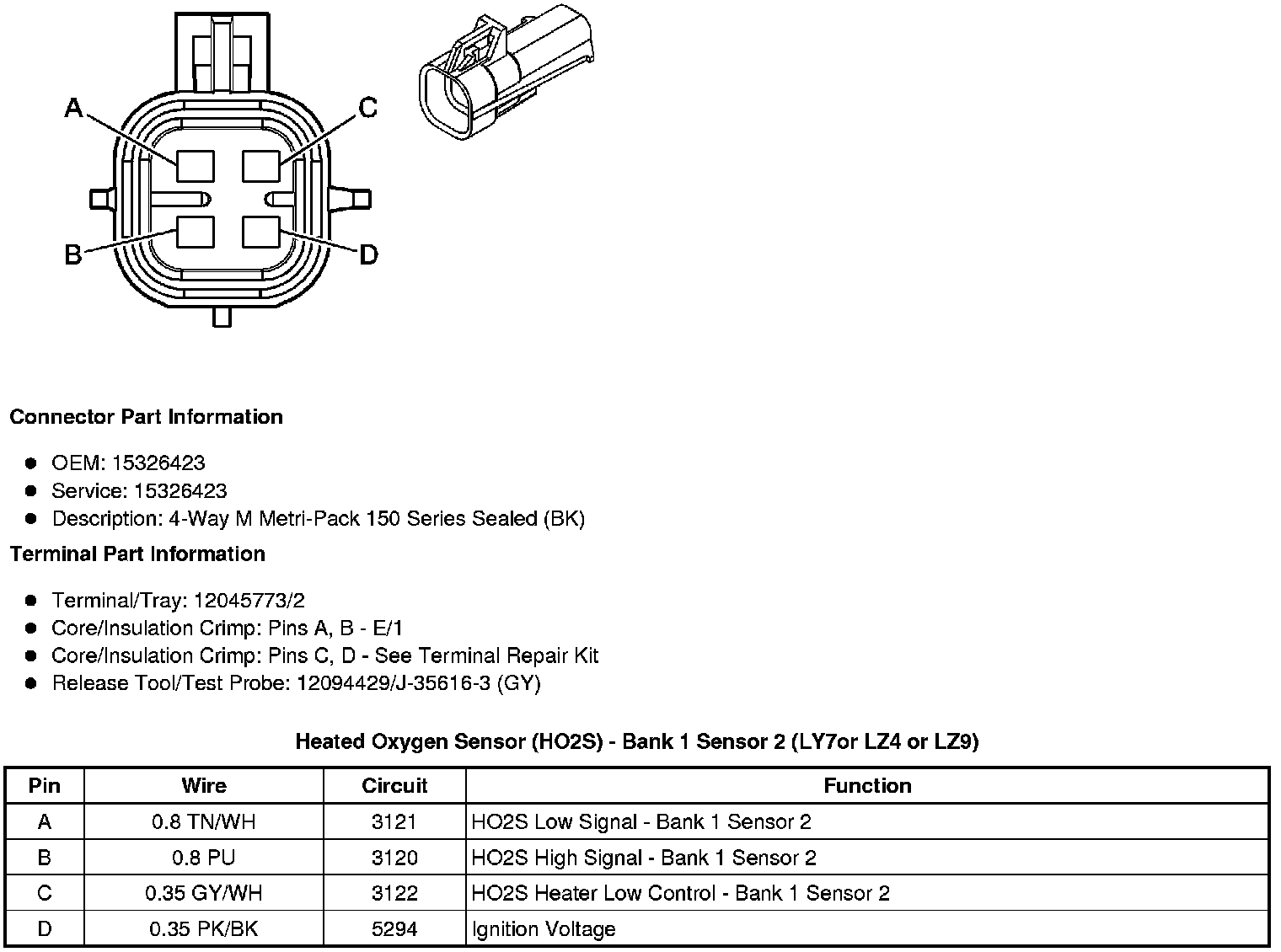 Heated Oxygen Sensor (HO2S) - Bank 2 Sensor 2 (LY7or LZ4 or LZ9)