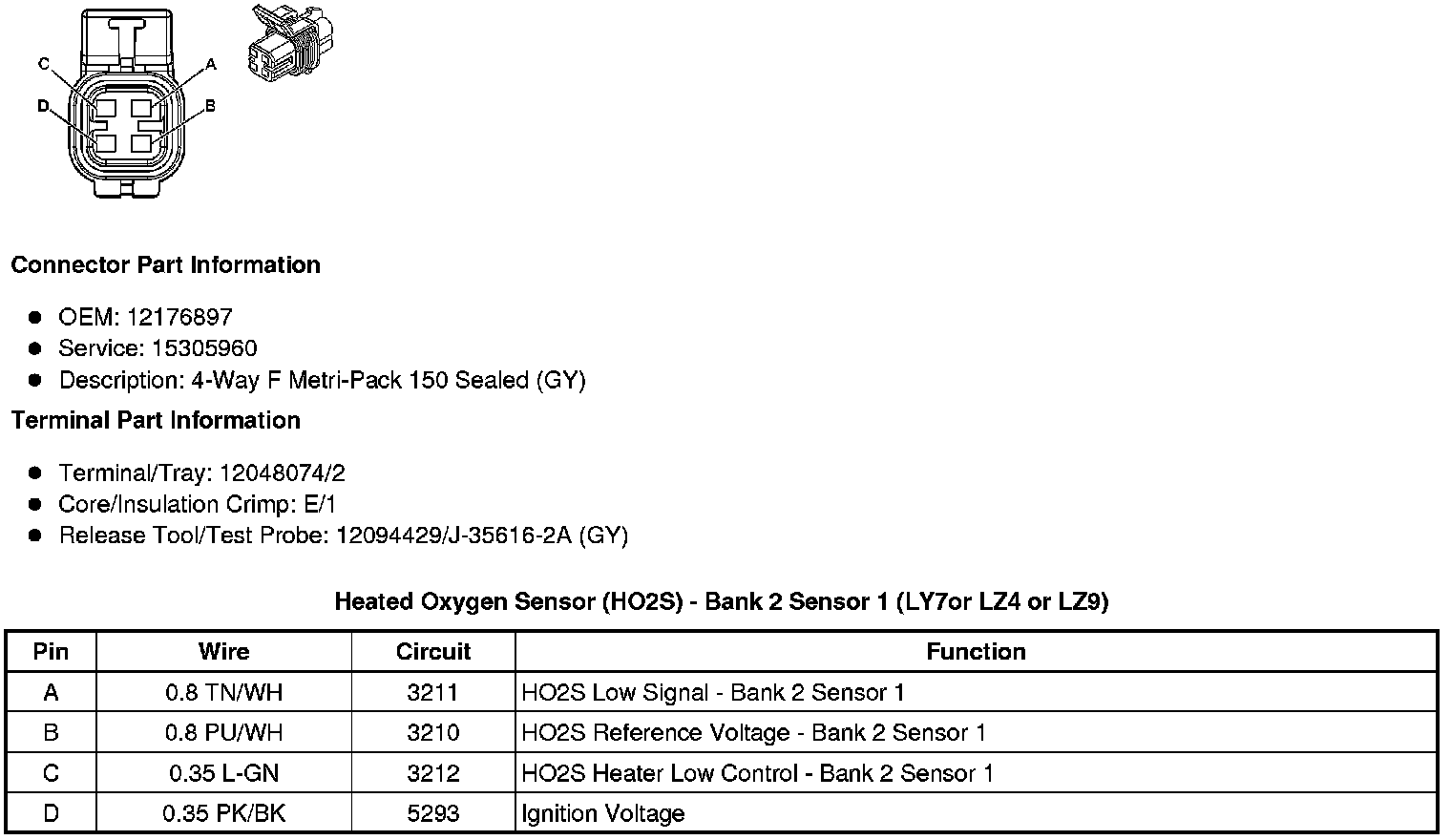 Heated Oxygen Sensor (HO2S) - Bank 2 Sensor 1 (LY7or LZ4 or LZ9)
