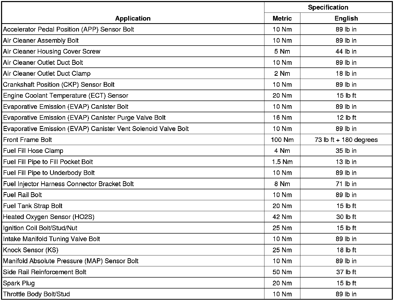Fastener Tightening Specifications