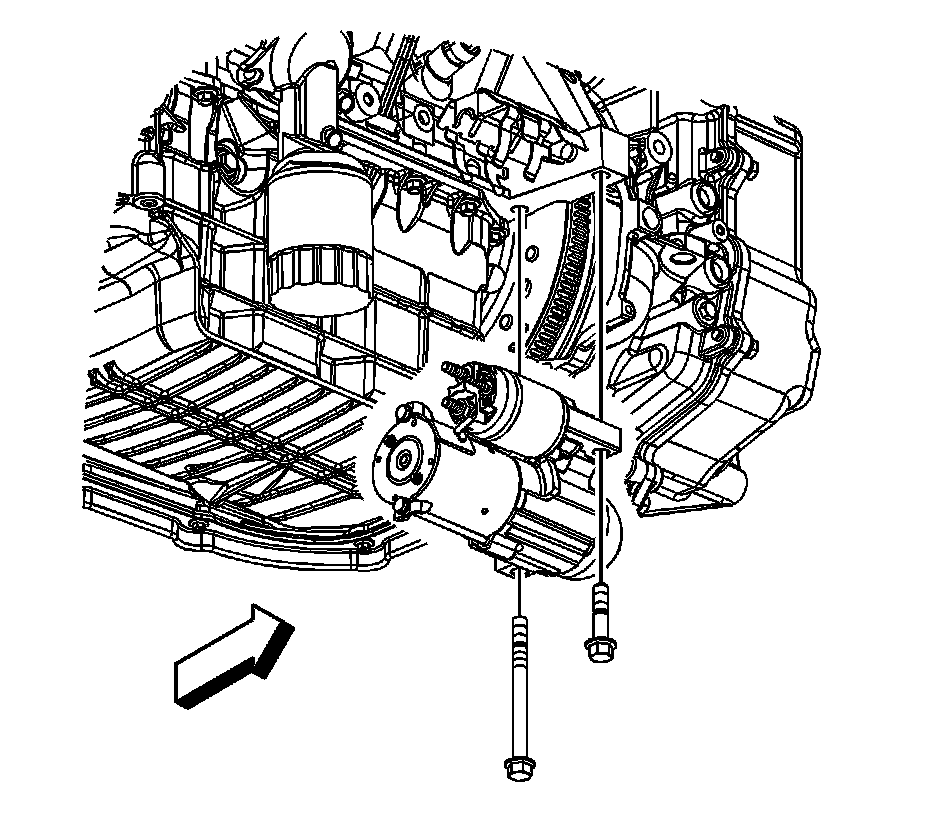 8. Remove the starter motor bolts.