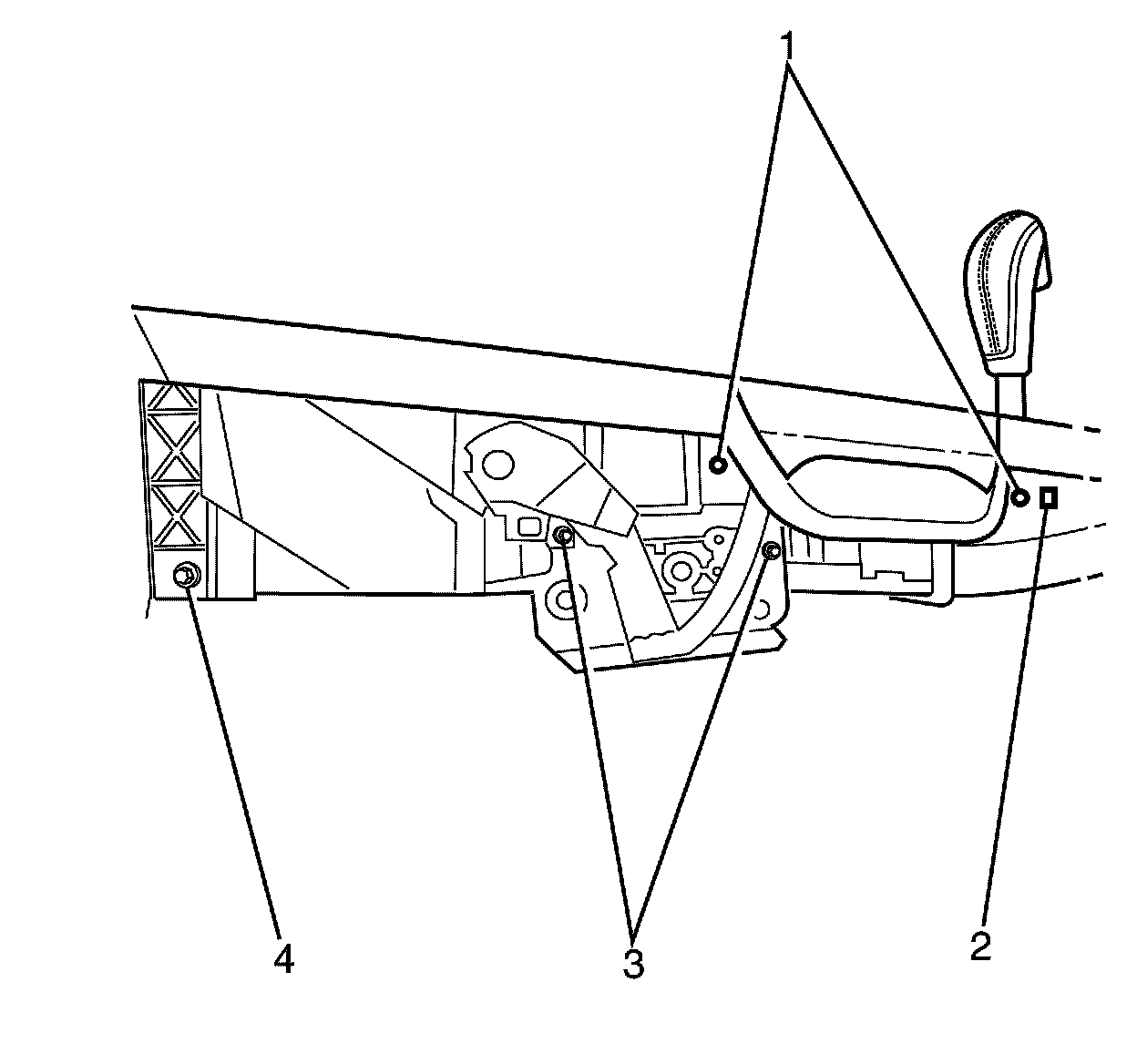 12. Install the coinholder and park brake recess trim upper retaining screws (2,4) and tighten to 2 Nm (18 lb in).
