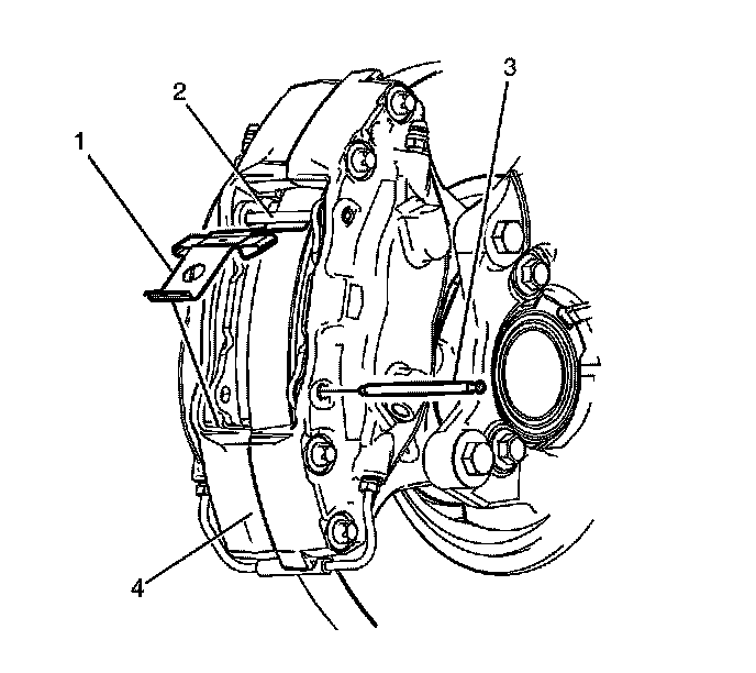 3. Replace the brake caliper guide pin (2) if the brake caliper guide pin (2) is damaged or corroded.