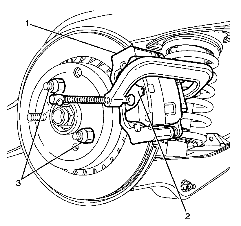 7. Install the brake caliper assembly (1) to the knuckle (3).