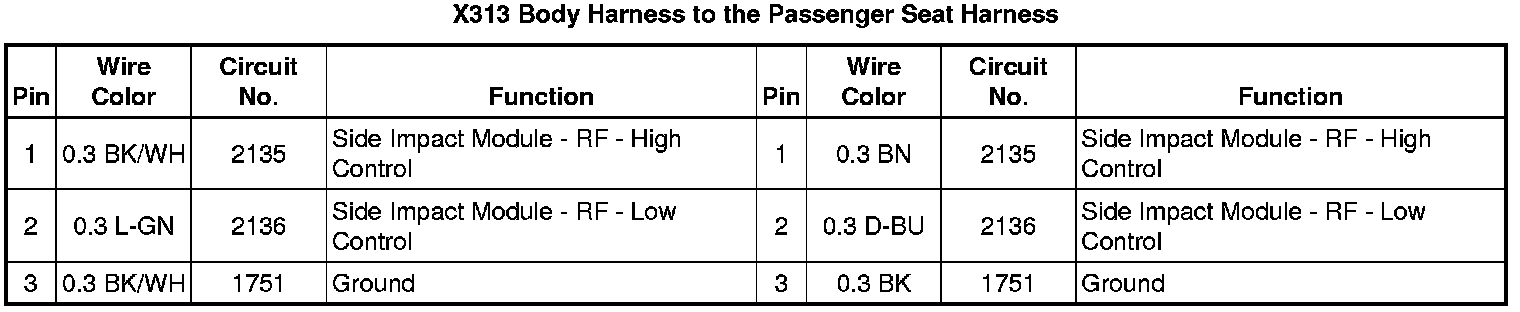 X313 Body Harness to the Passenger Seat Harness