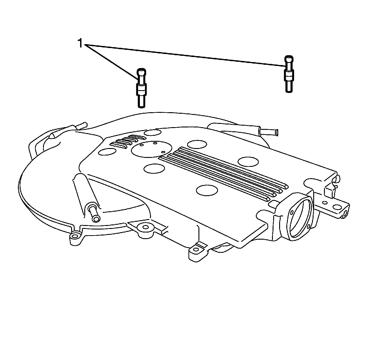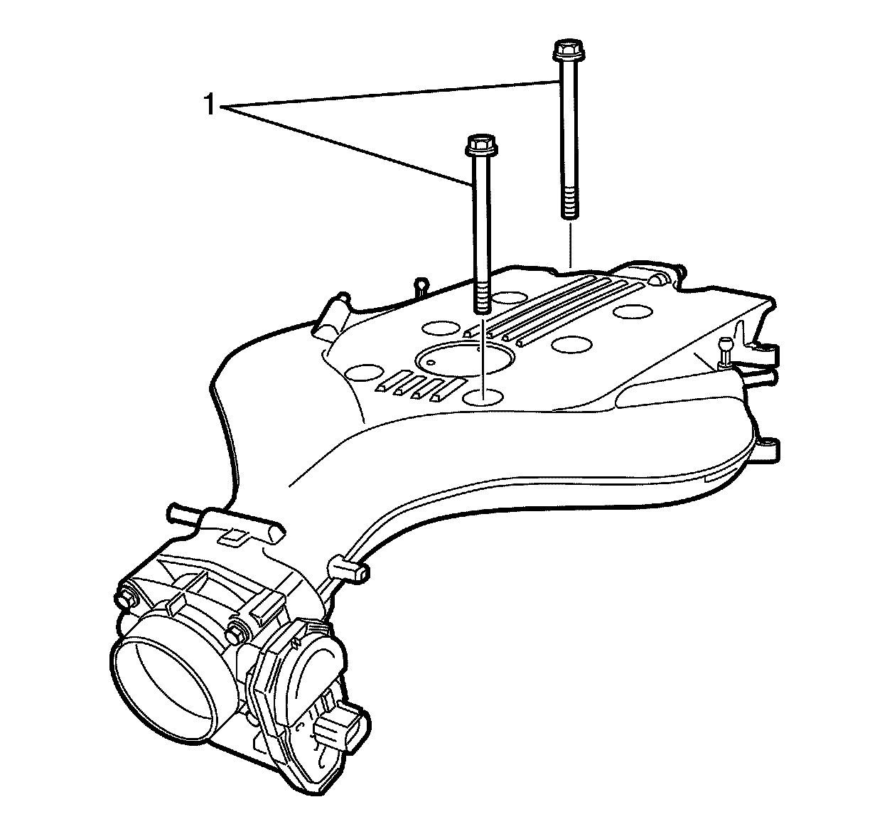 1. Remove the throttle body bolts to upper intake manifold retaining bolts (1).